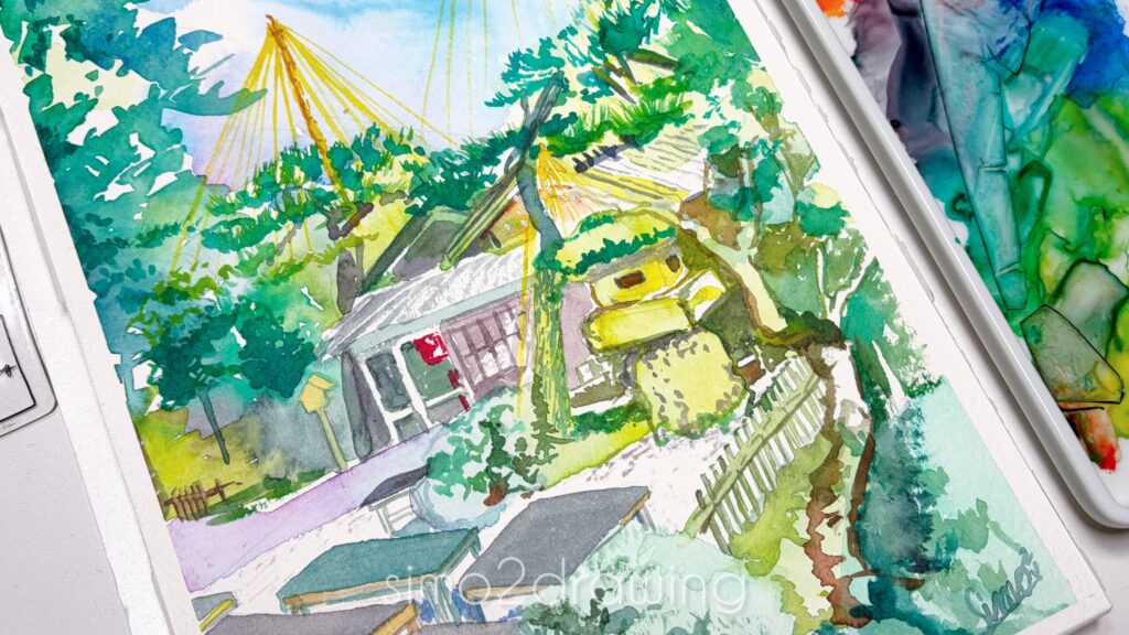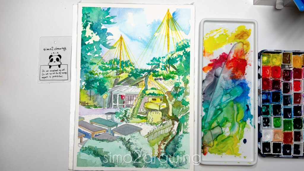12月下旬に家族旅行で足を運んだ兼六園を描きました。